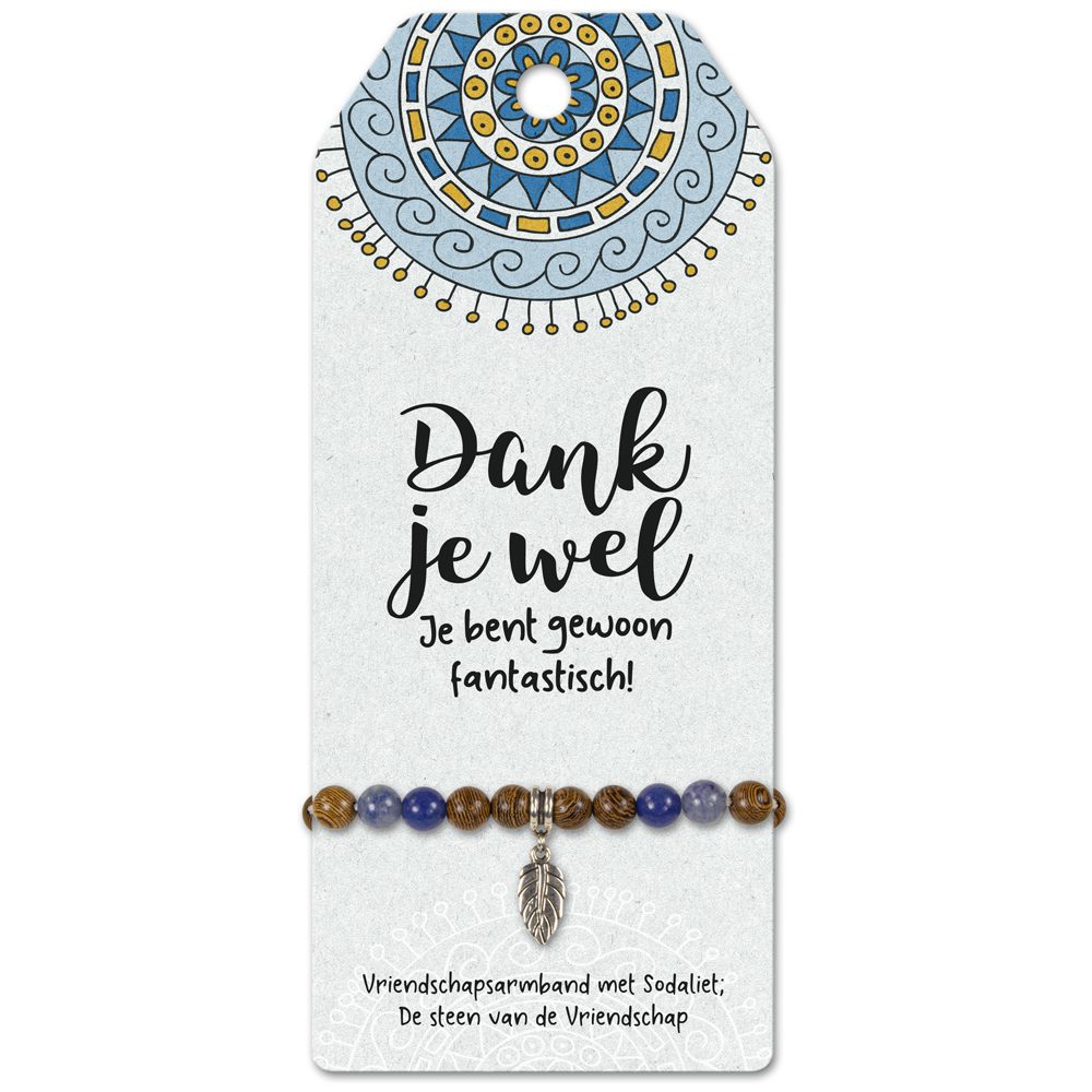 Armbandjes zijn niet meer weg te denken als mode accessoire en uiteraard zijn ze daarom ook erg leuk om cadeau te geven. De Vriendschapsarmband is een modern armbandje waarin houten en edelsteen kralen zijn gecombineerd. De edelsteen is verkrijgbaar in meerdere soorten waardoor elk armbandje met bijhorende complimenteuze cadeaukaart een bijzondere betekenis heeft. De complete collectie wordt gepresenteerd in een nieuwe, luxueuze houten draaidisplay.